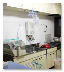 キッチンには、必要最低限の調理道具・器具・食器等を備えておりますが、他のお客様との共有とさせていただいておりますので、乳幼児をお連れのお客様、その他敏感なお客様につきましては、大変ご面倒ではございますがお客様自身で必要な物をご用意いただきますようお願いいたします。